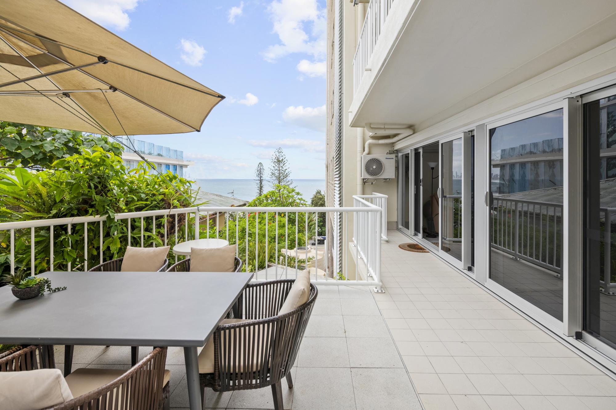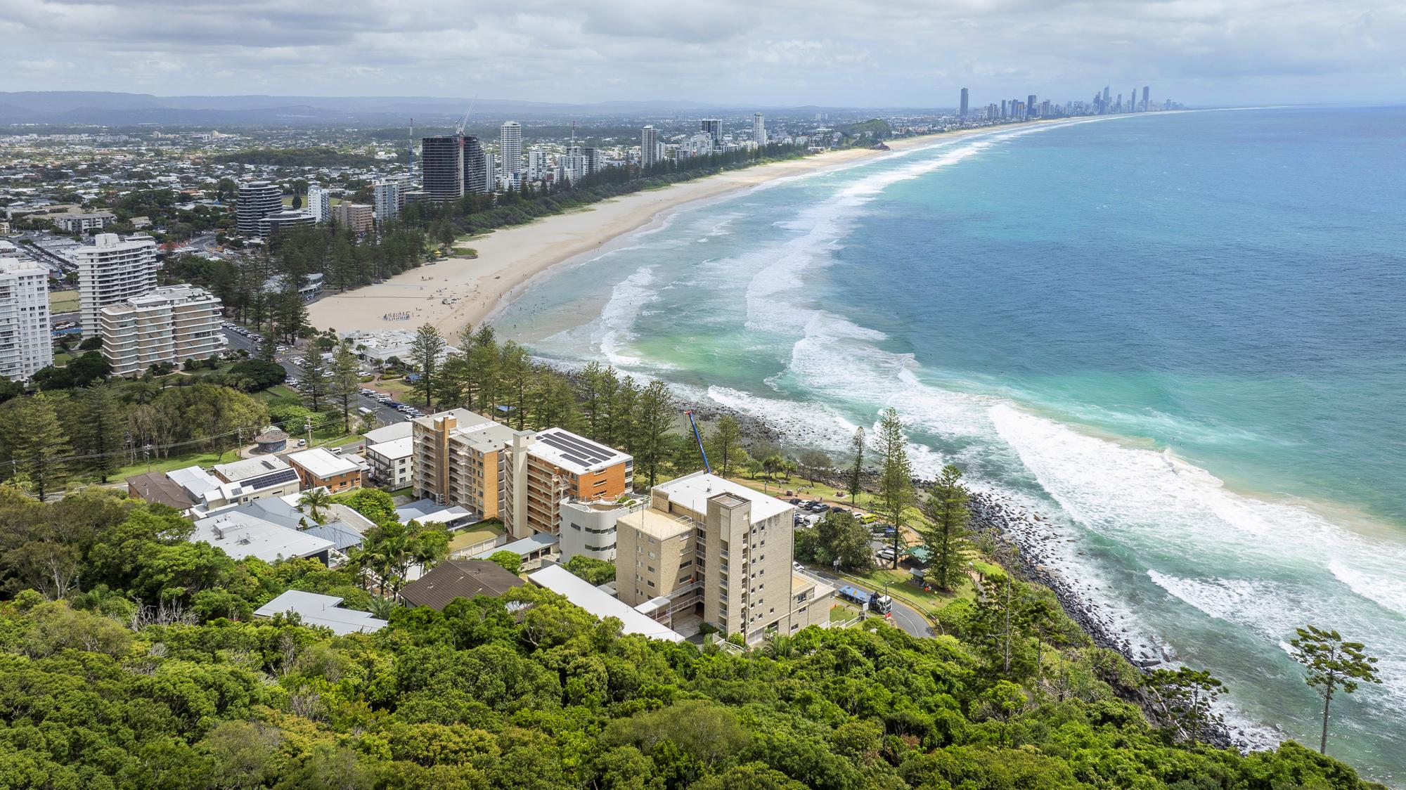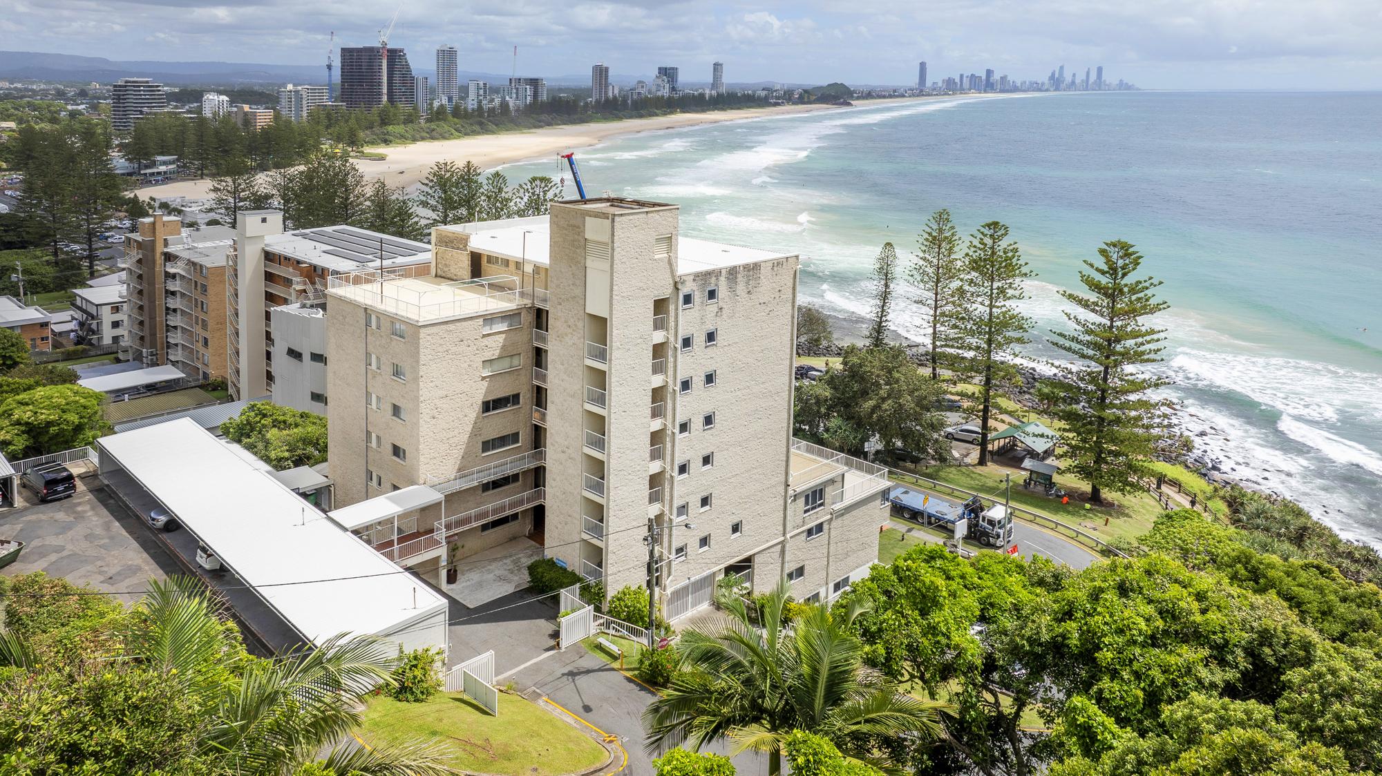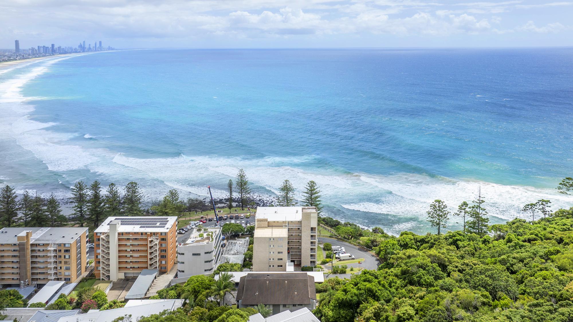 7. Prime beachfront location directly opposite Burleigh Heads Beach, with panoramic views and northerly balcony aspect up the coast to Surfers Paradise, enhancing holiday appeal and rental yields.