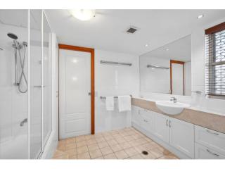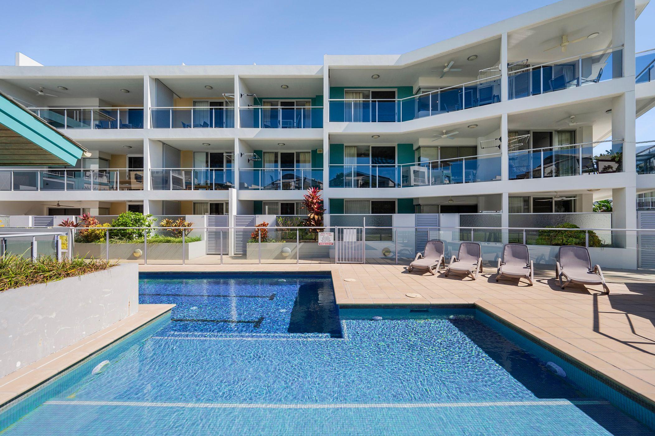 The manager’s 3 Bedroom with courtyard and pet friendly residence is a standout feature, offering both luxury and practicality. It includes a spacious double lock-up garage (DLUG), a large outdoor entertaining area, two private courtyards, and a beautifully landscaped garden. These expansive living spaces provide plenty of room for entertaining family and friends, making it easy to enjoy the relaxed coastal lifestyle.
