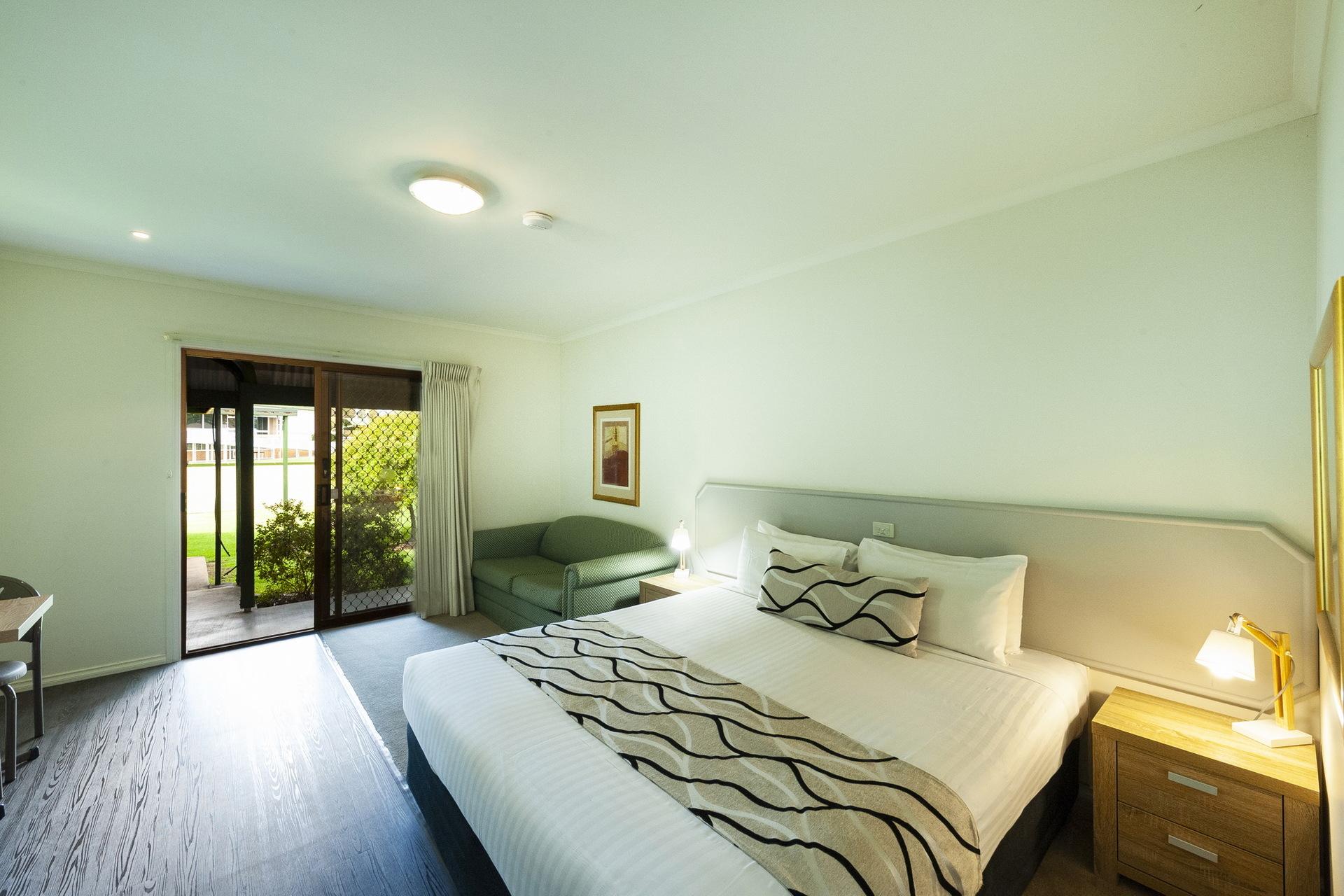 5. On-site spacious 2-bedroom family residence with open lounge and dining, plus private outdoor space.