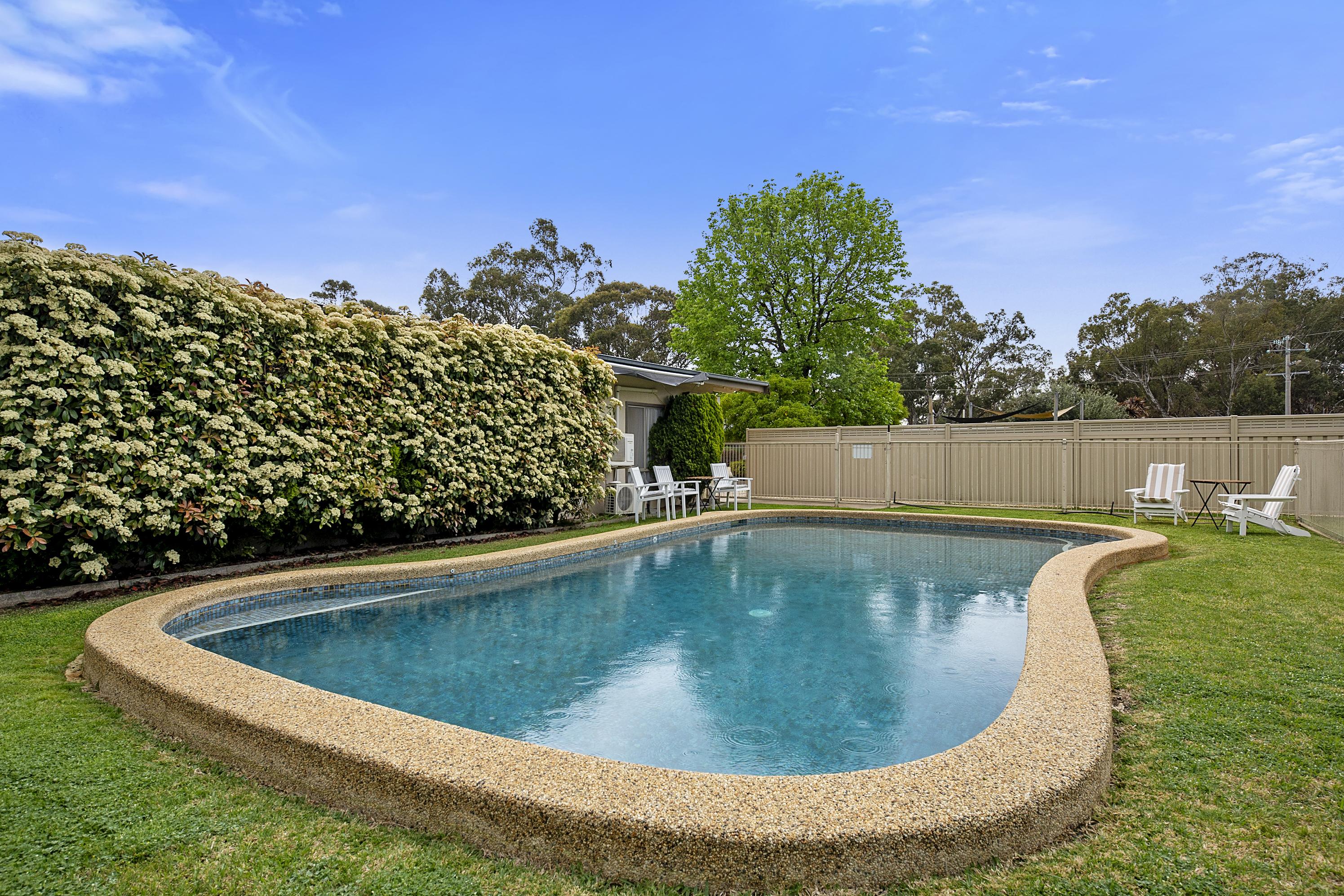 3. Extensive outdoor amenities including expansive grassed areas, an inground swimming pool, BBQ facilities, and ample off street parking, enhancing guest appeal.