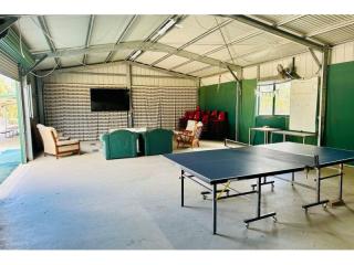 Guests enjoy a wide range of amenities designed for relaxation and recreation, including a solar-heated in-ground swimming pool, a full-size tennis court plus two half courts, all floodlit for evening play. Families can take advantage of the outdoor children's playground, camp kitchen and recreation room, while the undercover BBQ marquee area, indoor and outdoor fireplaces and wood barbeques create welcoming spaces for gatherings. A large amenities block with showers, toilets and laundries services the camping areas.