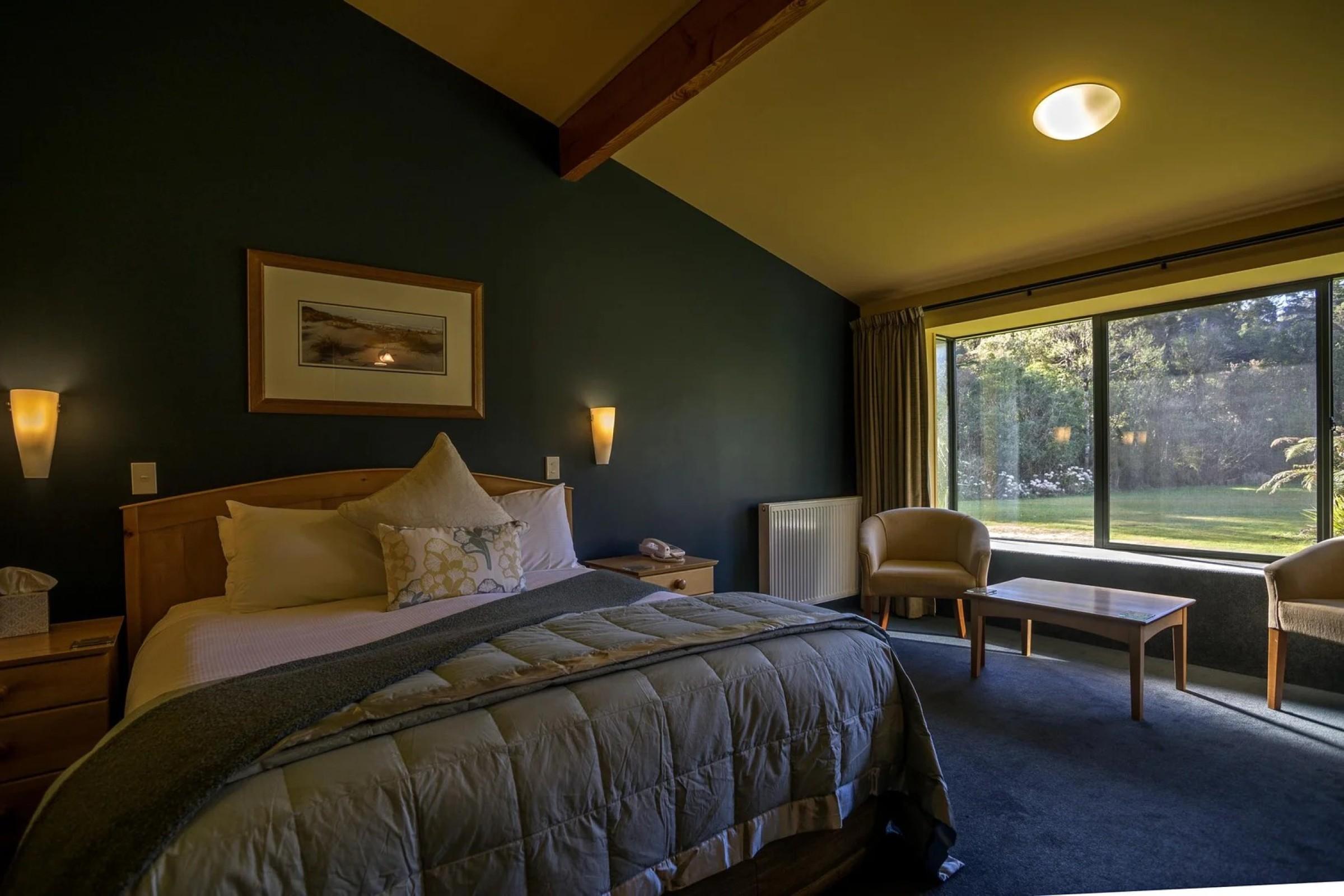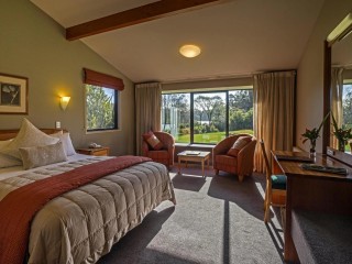Wilderness Lodge Lake Moeraki – 28-room lodge on 4.2507 hectares in a UNESCO World Heritage Area, surrounded by lakes, rivers, beaches, and rainforest.