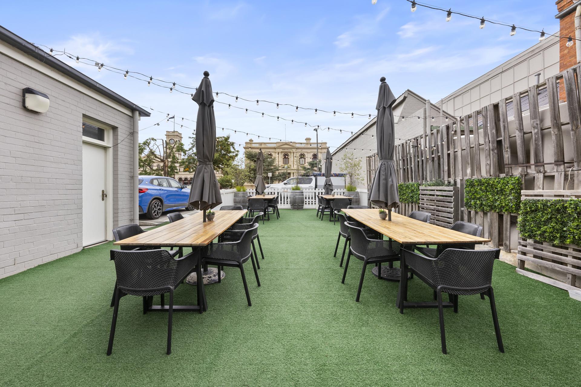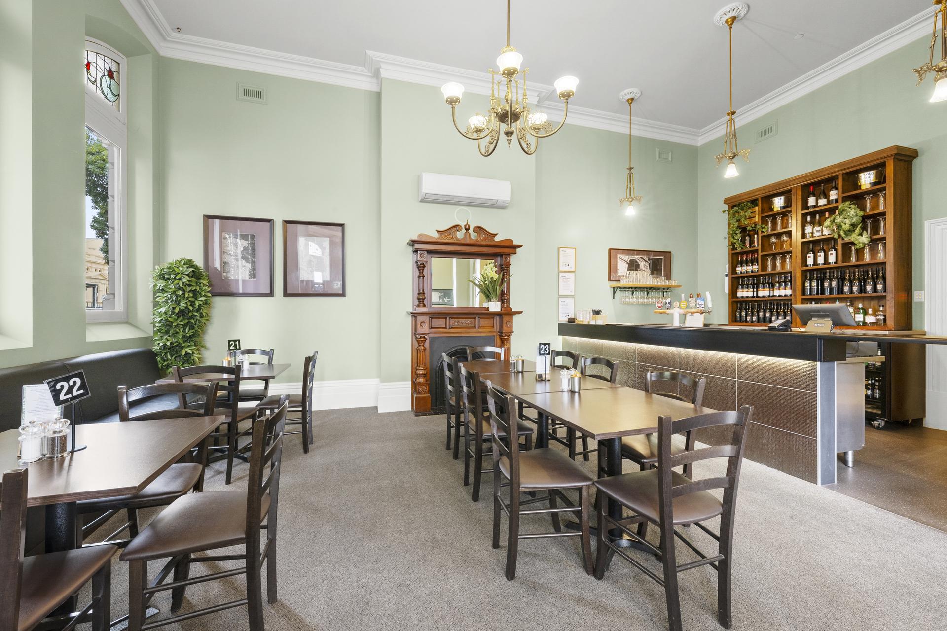* Multiple income streams - front lounge, wine bar, main dining area and cafe with bar, two outdoor options, street trading and rear courtyard plus conference room or private dining room.