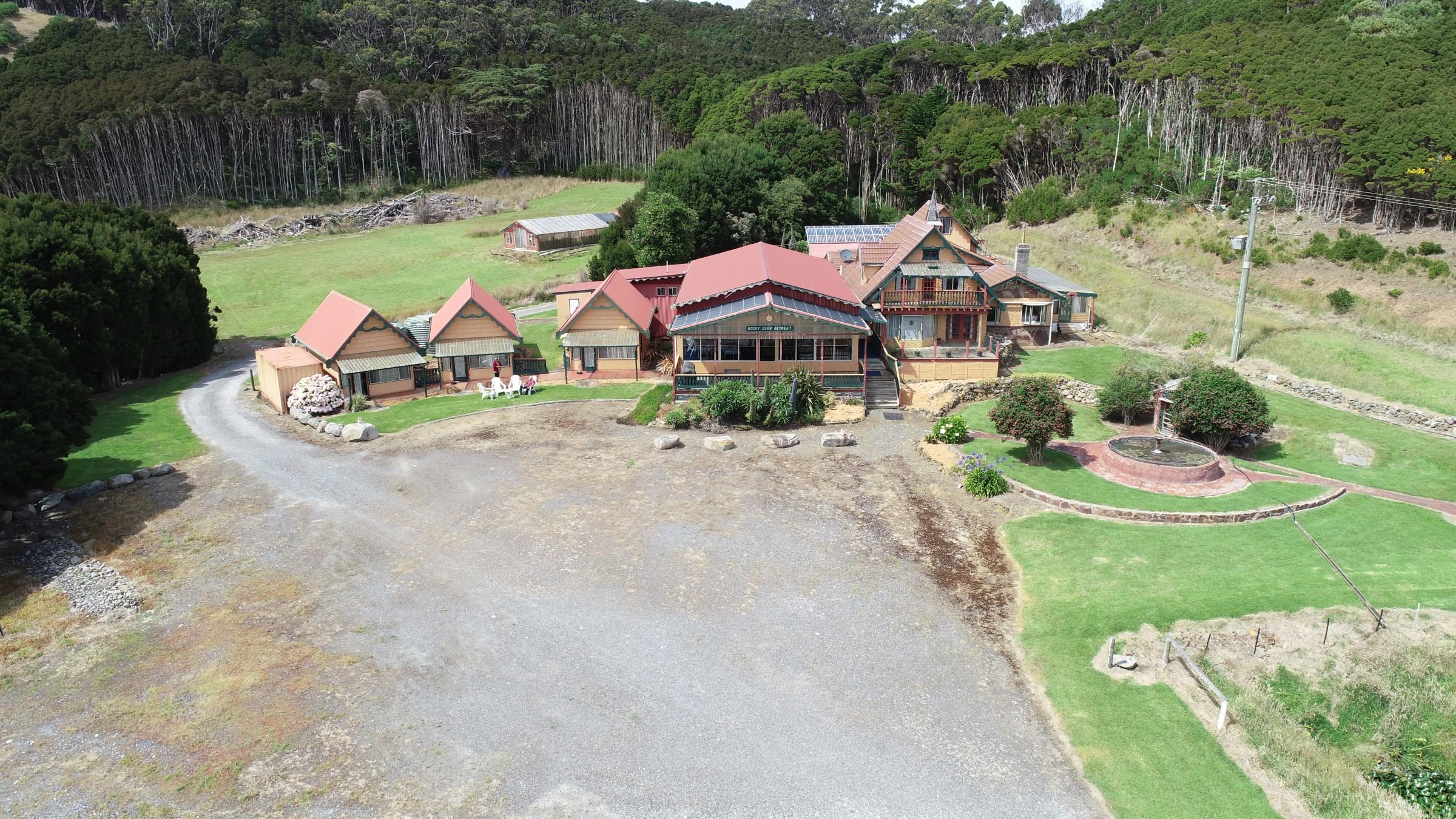 Comprising pasture, huge stands of tea trees, plenty of dams, running water. The home has 4 bedrooms, 2 lounge rooms, one with a mezzanine floor, the restaurant can comfortably seat one hundred guests, complimented by male and female toilets and a commercial kitchen current food and liquor licenses, as well as solar panels.