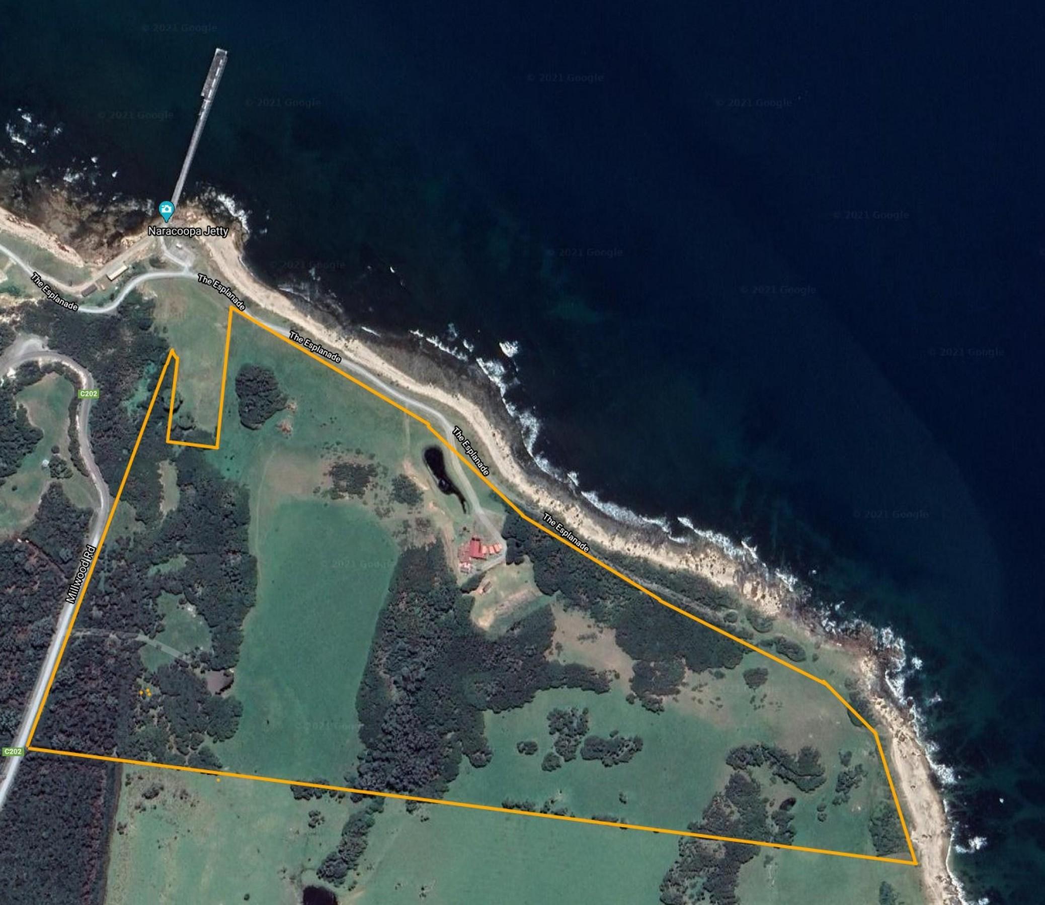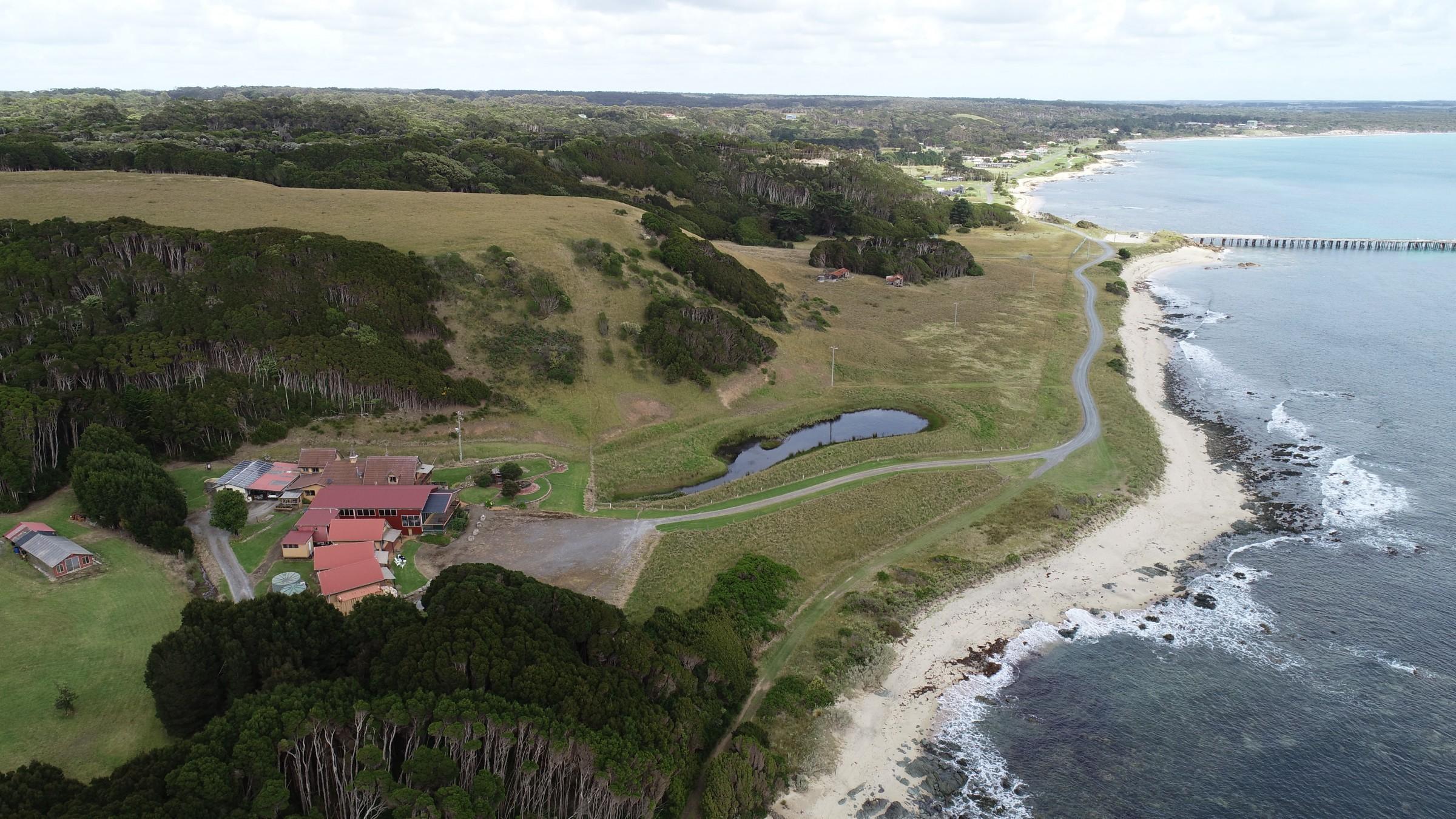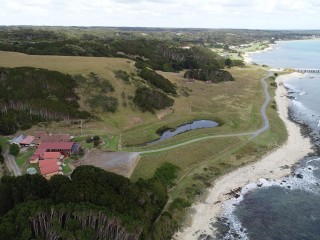 I fell in love with this property when I first inspected it, approx 75 acres with 1klm of ocean frontage. So hard to find tucked under the cliffs in a protected glen, with cliffs rising steeply behind the residence.