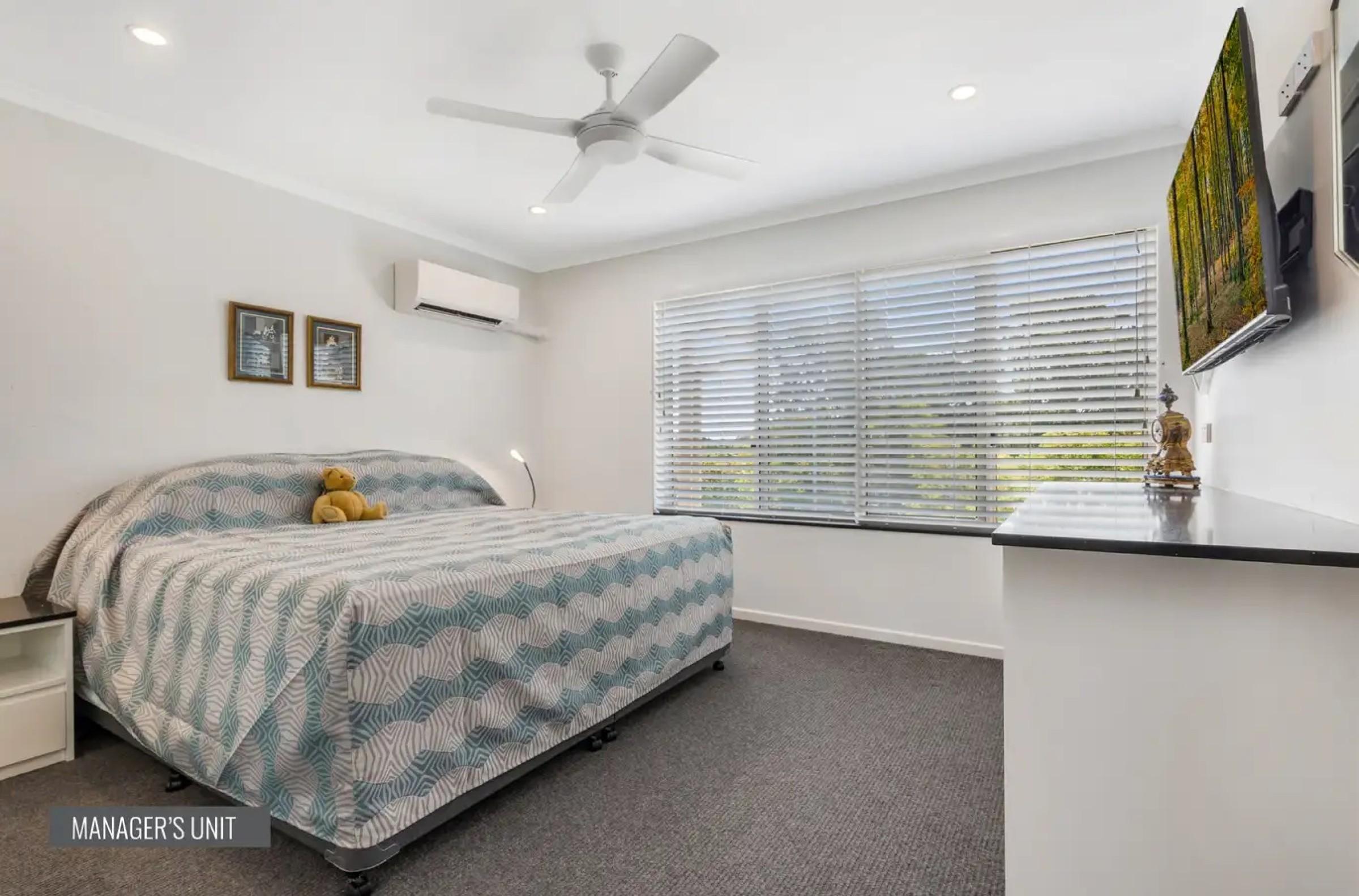 Value of Managers Apartment: $1,100,000Bedrooms: 2Car Spaces: 1Office: On Title RECEPTION/OFFICE + MANAGER'S UNIT - 2 bedroom residence has a north facing balcony with views of the Noosa River and an exclusive use 15m²* lock-up garage.