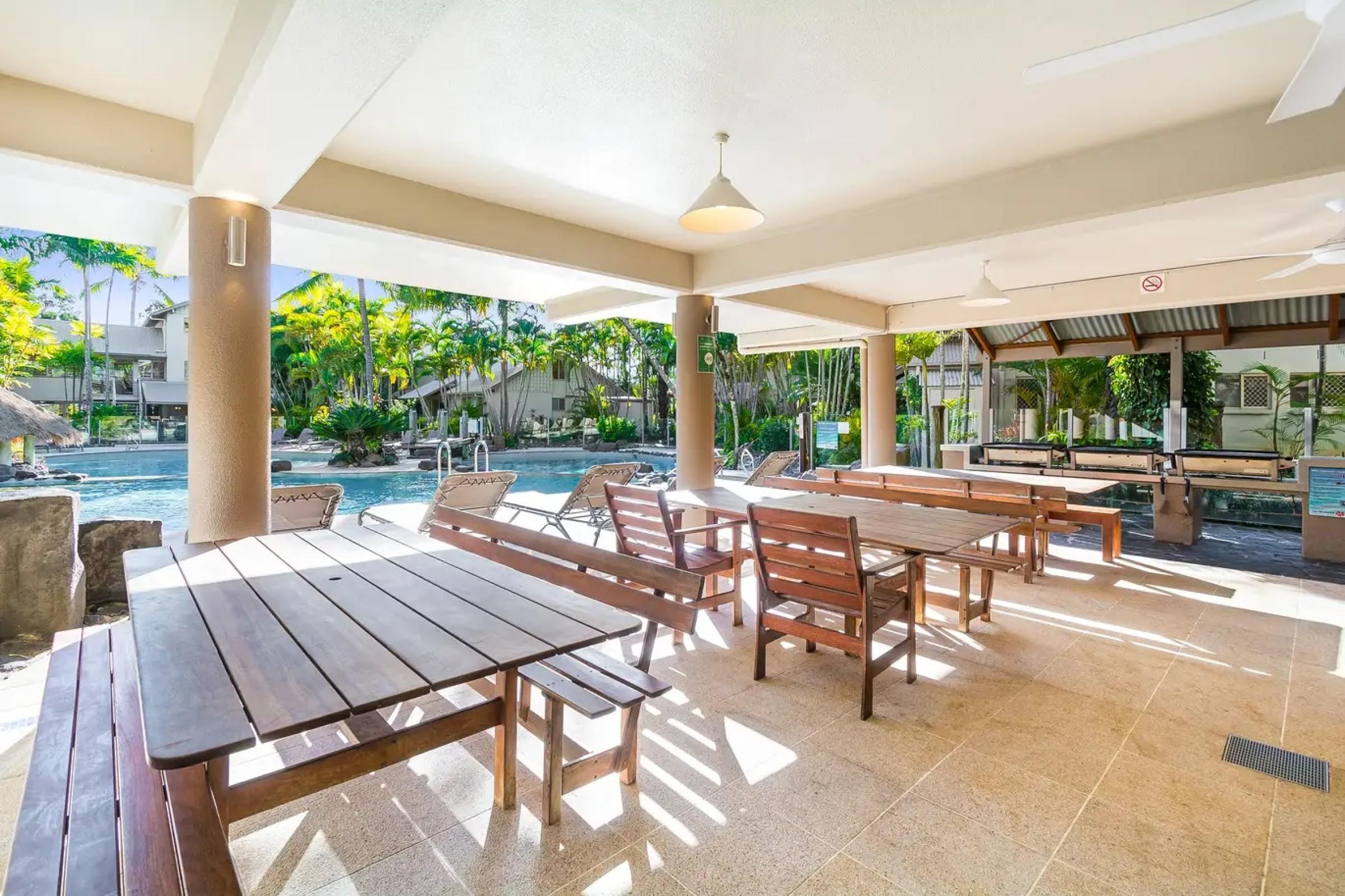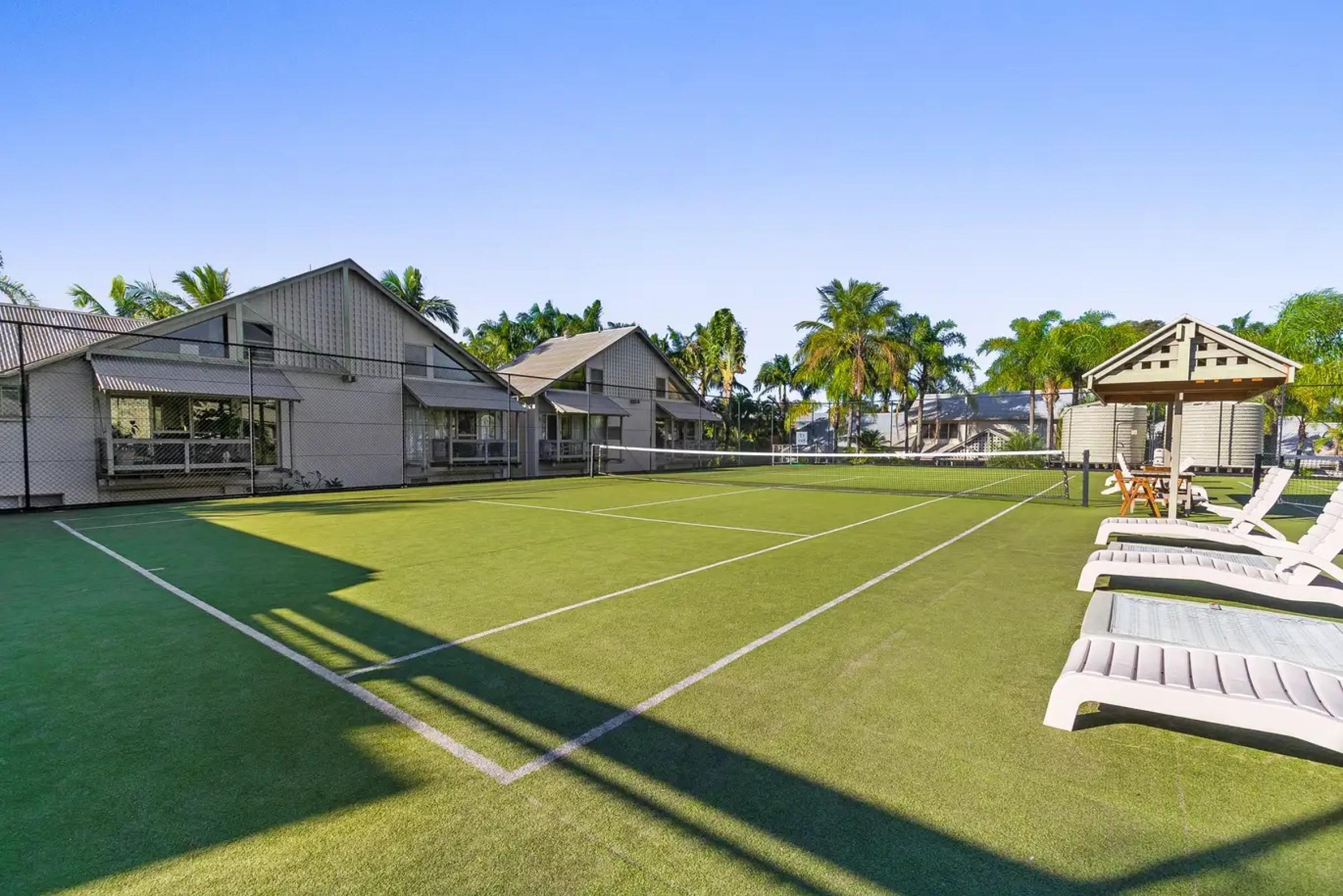 9. Resort facilities include 3 pools, 3 spas, 2 saunas, 2 tennis courts, gym, and BBQ areas.