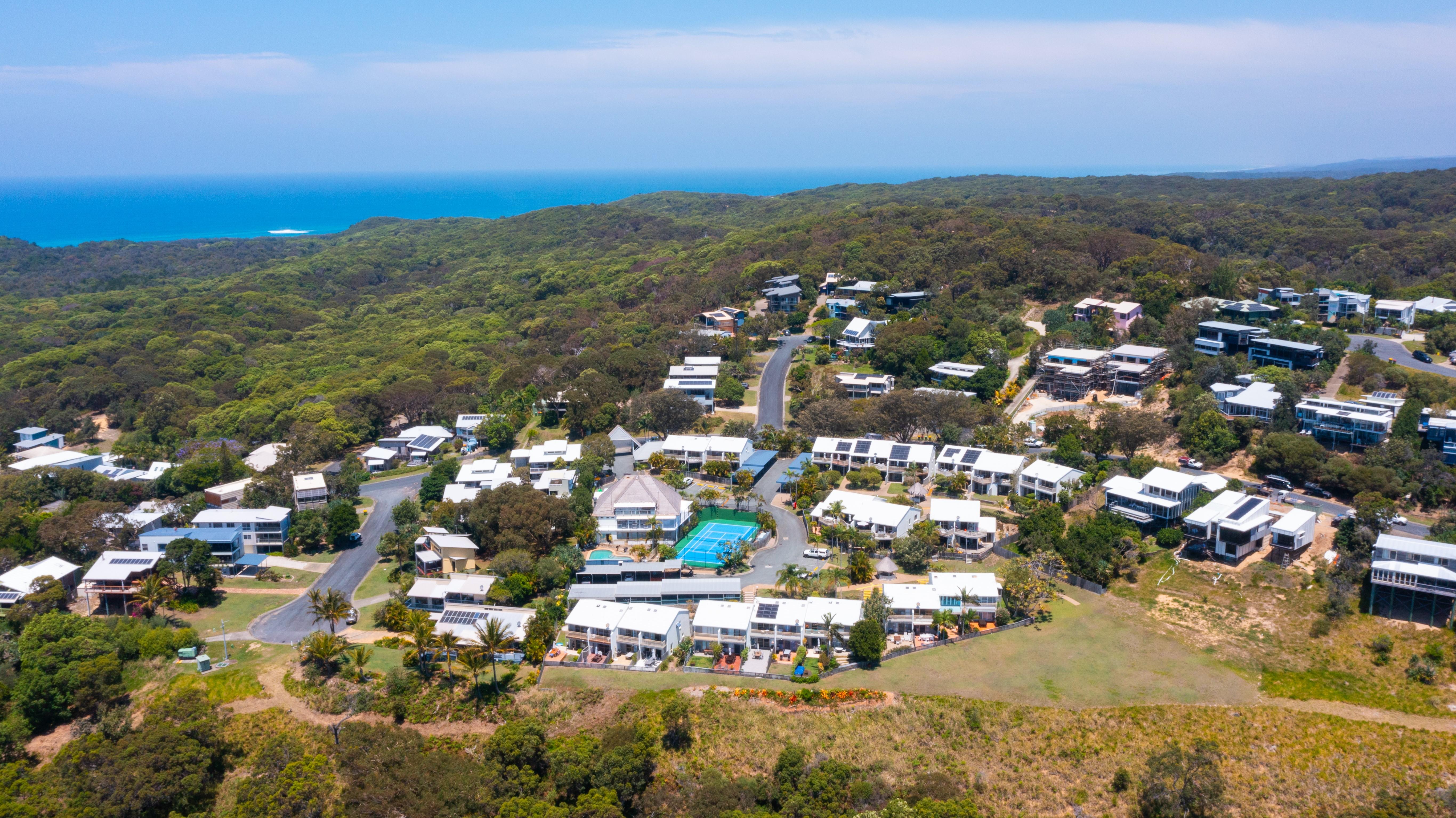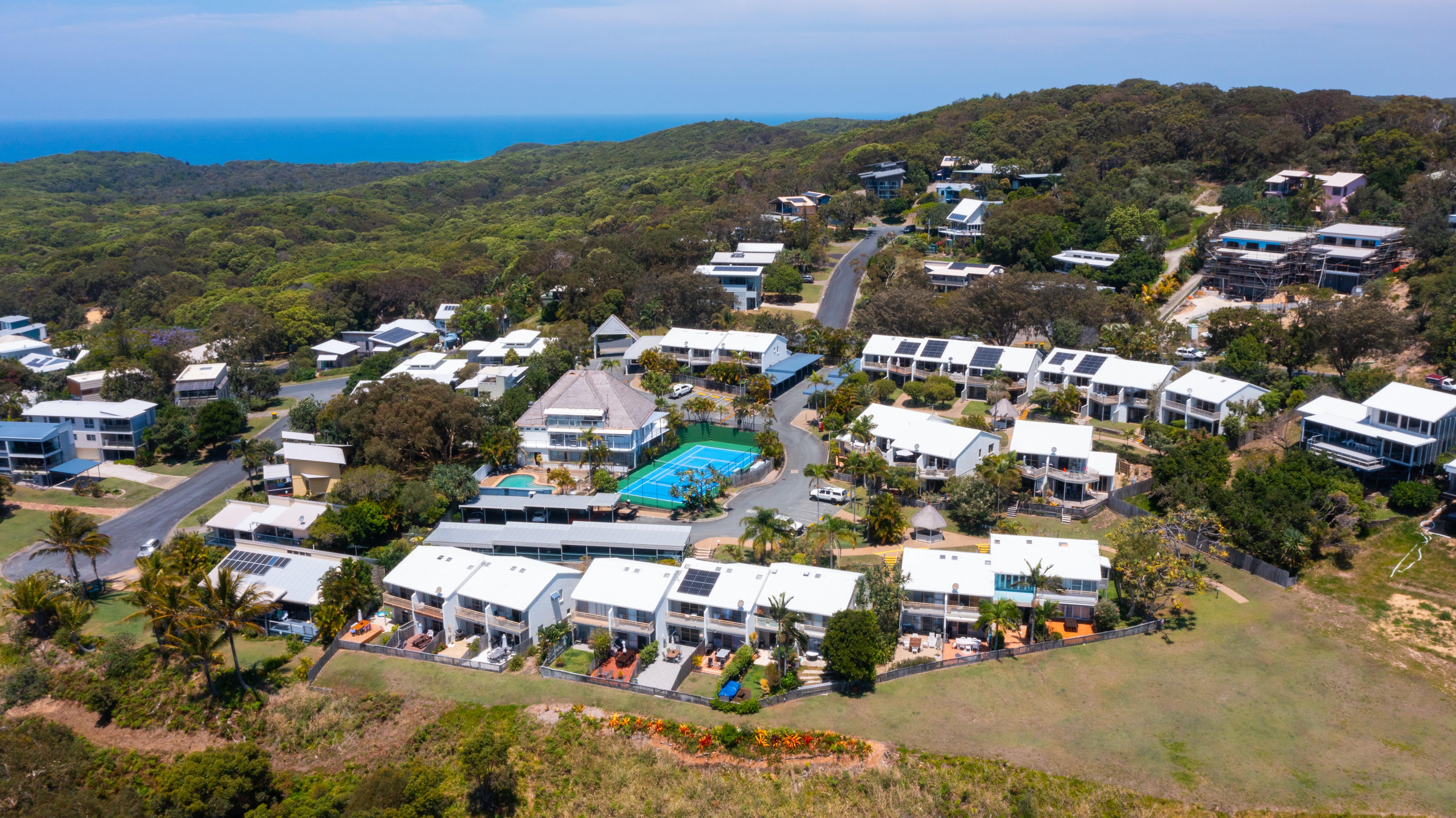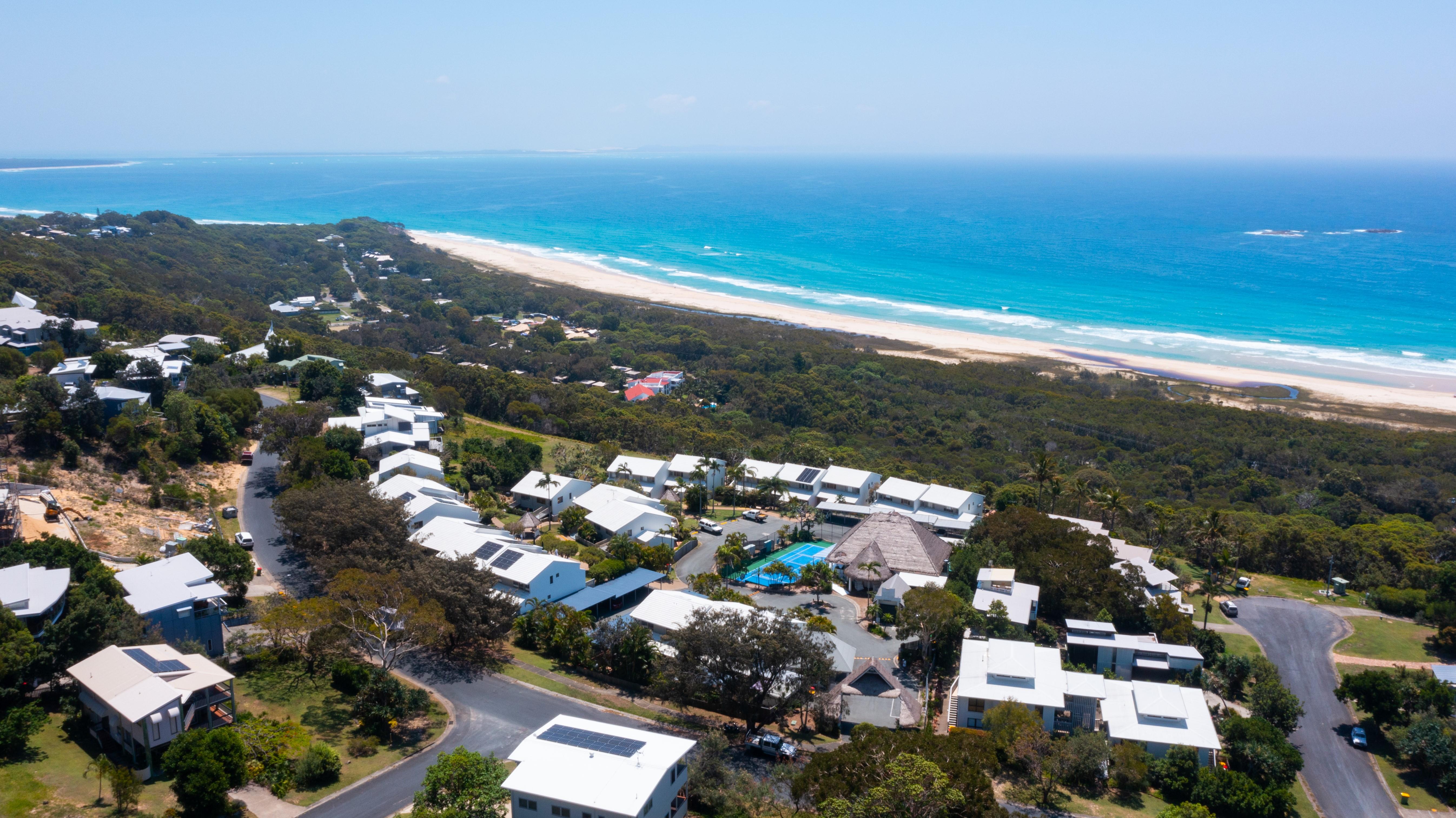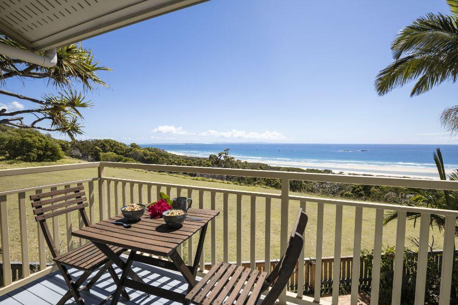 8. Prime location at Point Lookout, elevated site amid Pandanus palms with breathtaking ocean views and whale watching, driving repeat visitation from families.
