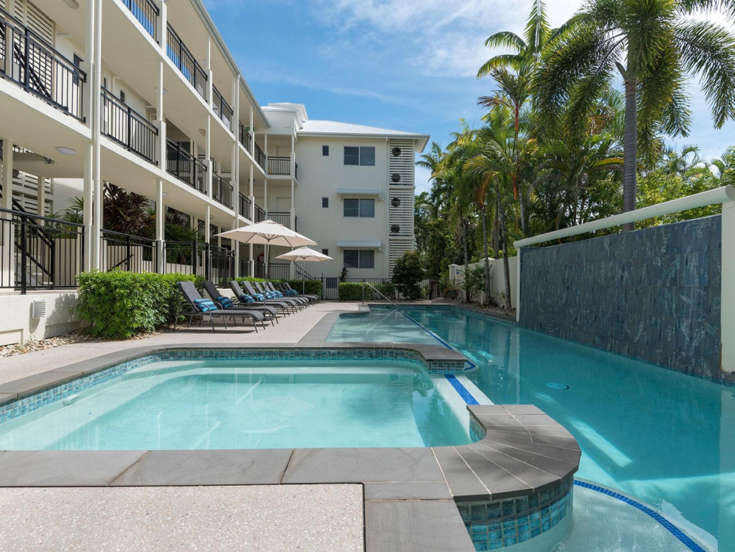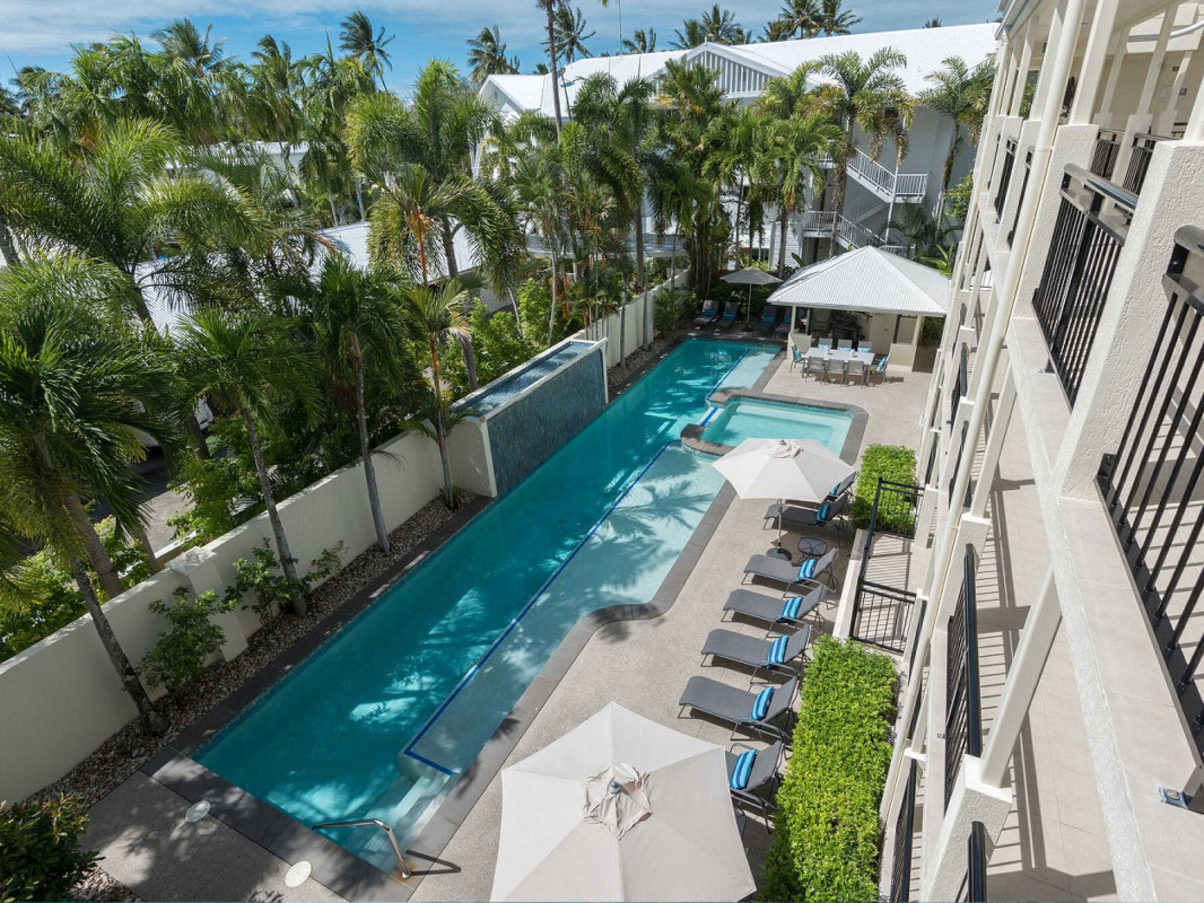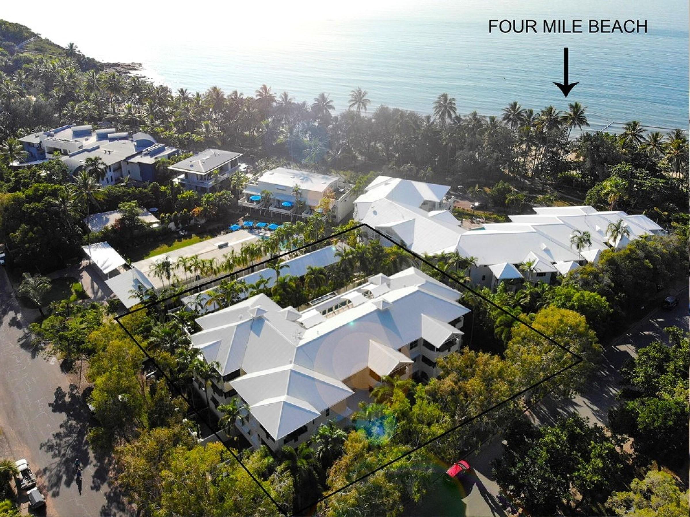 9. Prime sheltered location 100 metres from Four Mile Beach, directly opposite the new water park, within easy walking distance to Macrossan Street dining and retail.