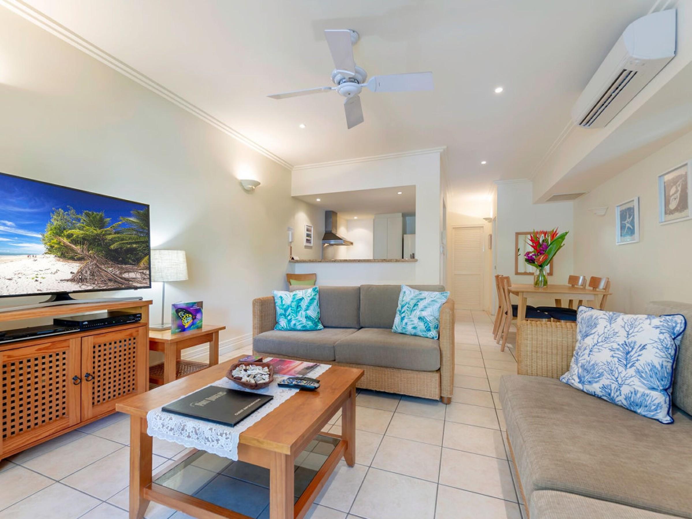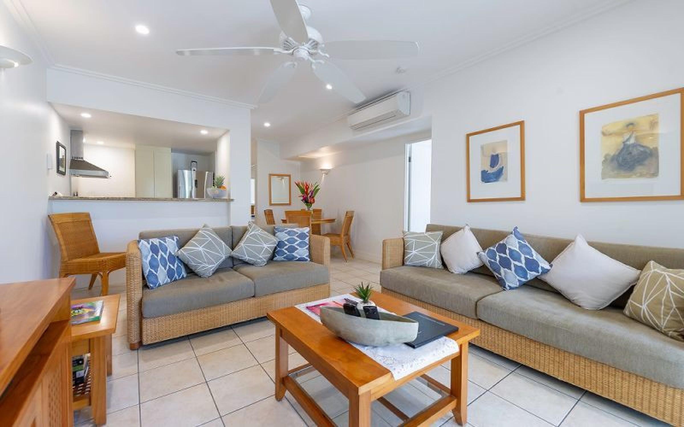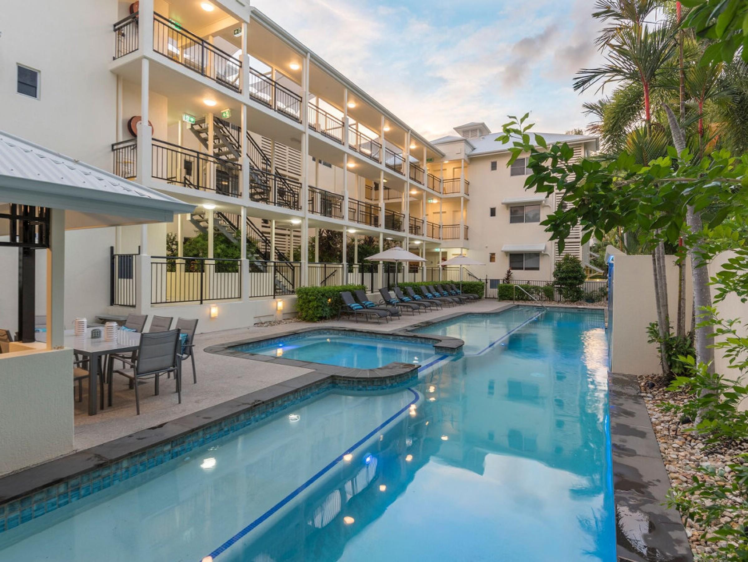 9. Prime sheltered location 100 metres from Four Mile Beach, directly opposite the new water park, within easy walking distance to Macrossan Street dining and retail.