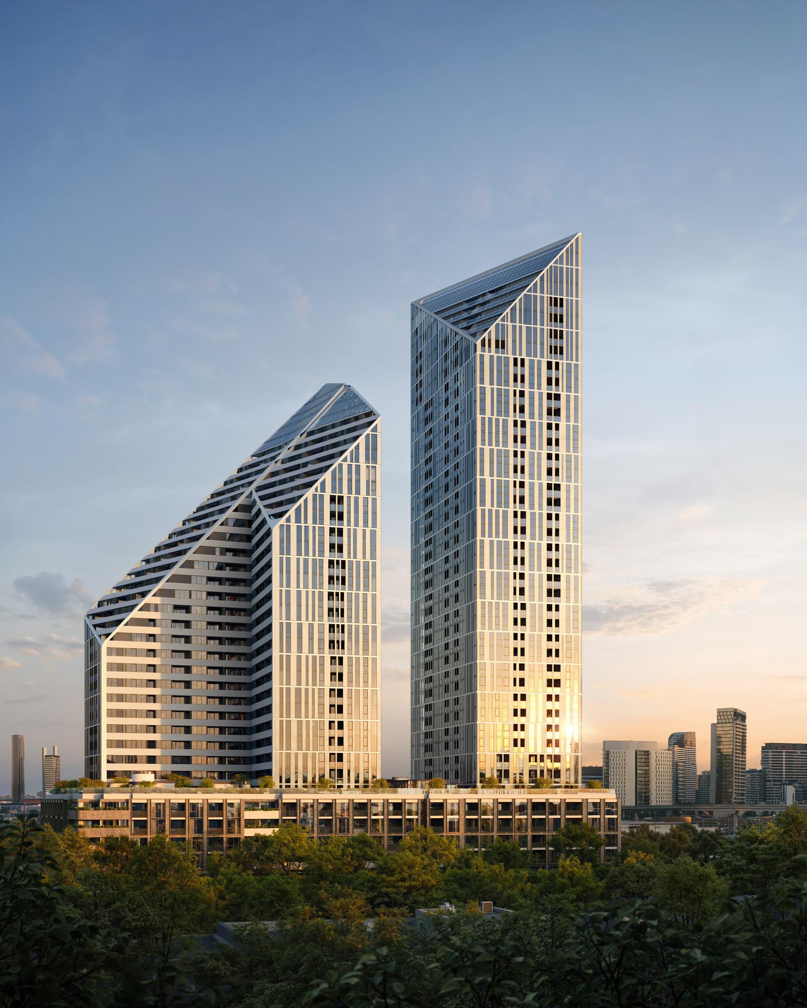 Two high-rise towers comprising a total of 879 apartments