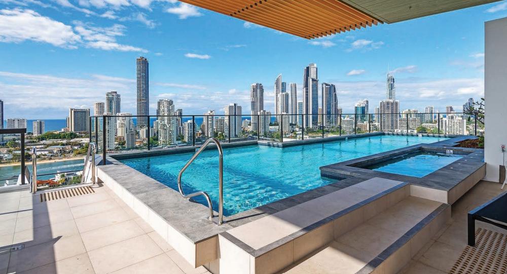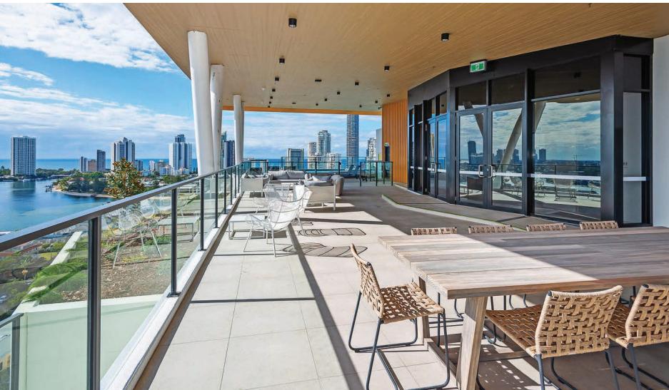 Elevate everyday living with the rooftop’s luxurious infinity pool, expansive sundeck, and stylish covered entertaining area with BBQ and panoramic views of the Surfers Paradise skyline, Nerang River, and hinterland.