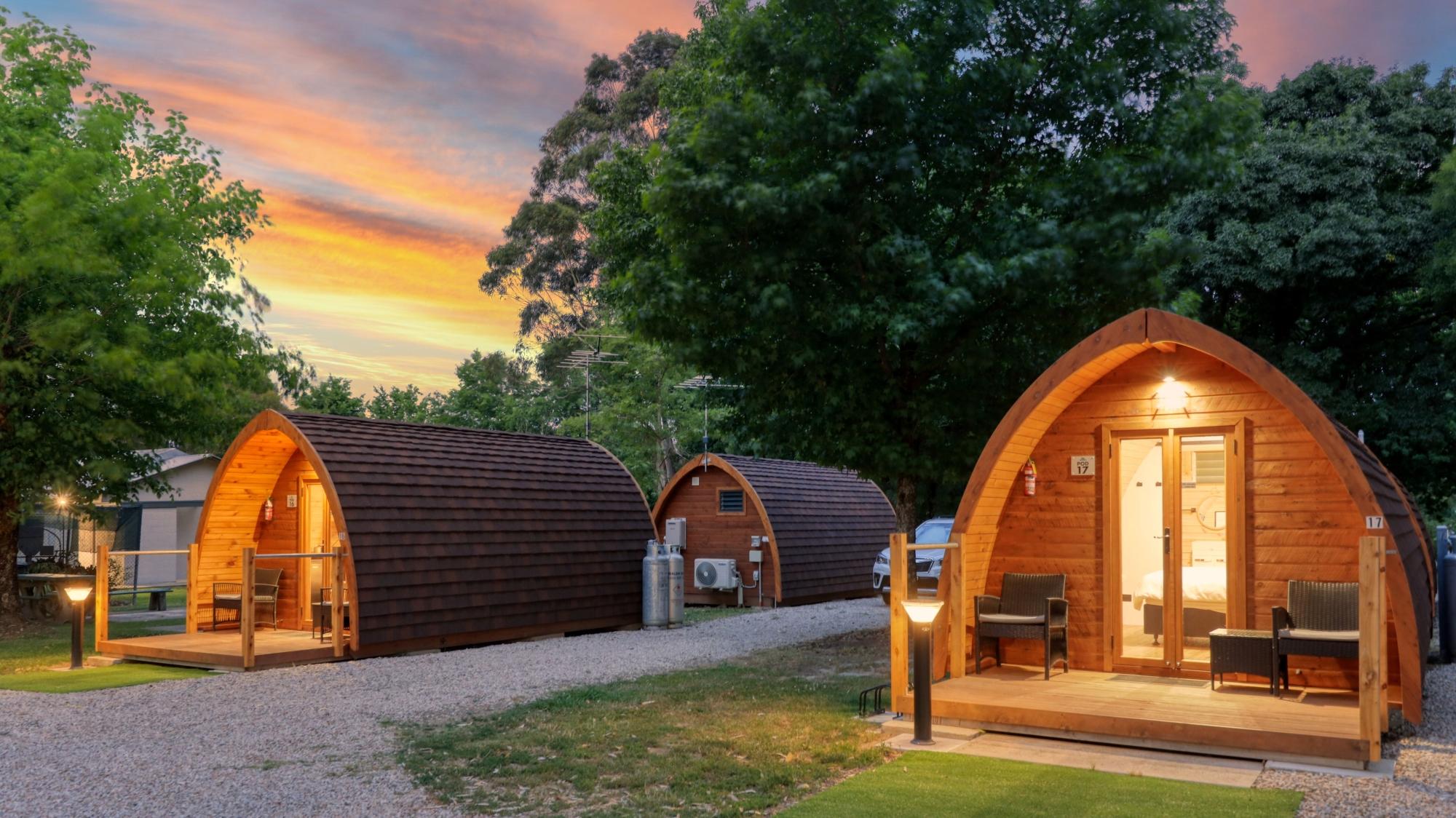 - 75 sitesacross 1.93 hectares, comprising 55 powered sites, 10 unpowered sites, six cabins and four selfcontained pods